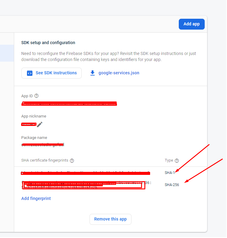 Add Sha1 and Sha256 key in firebase