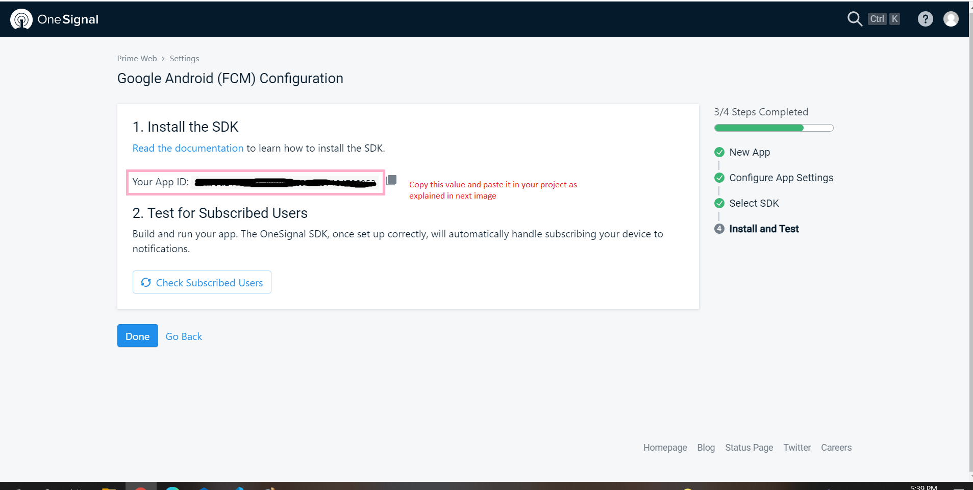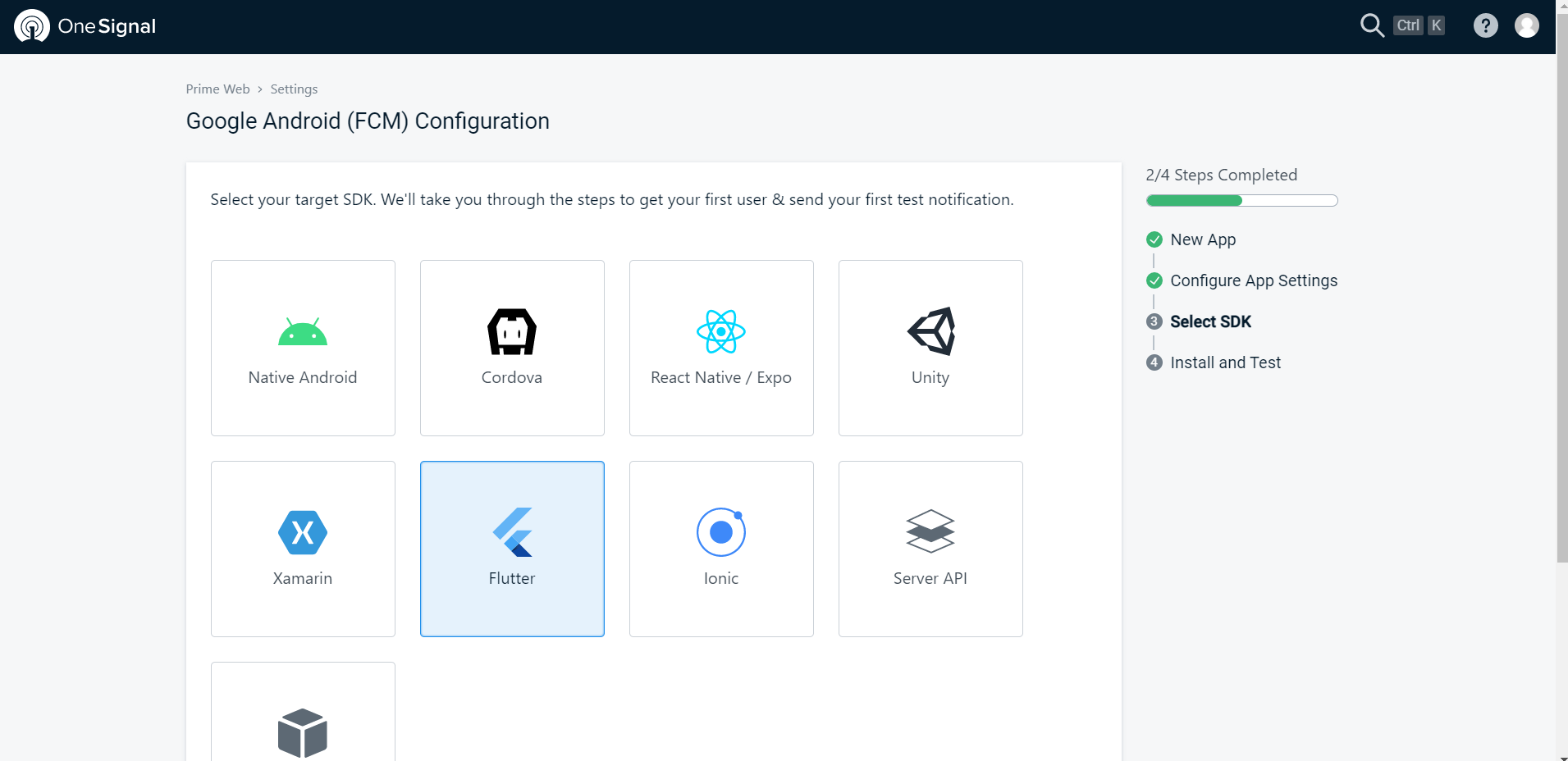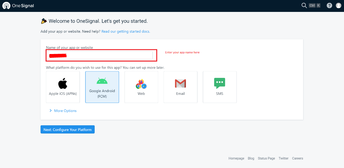 Step 1: Create onesignal project in your account Choose android platform