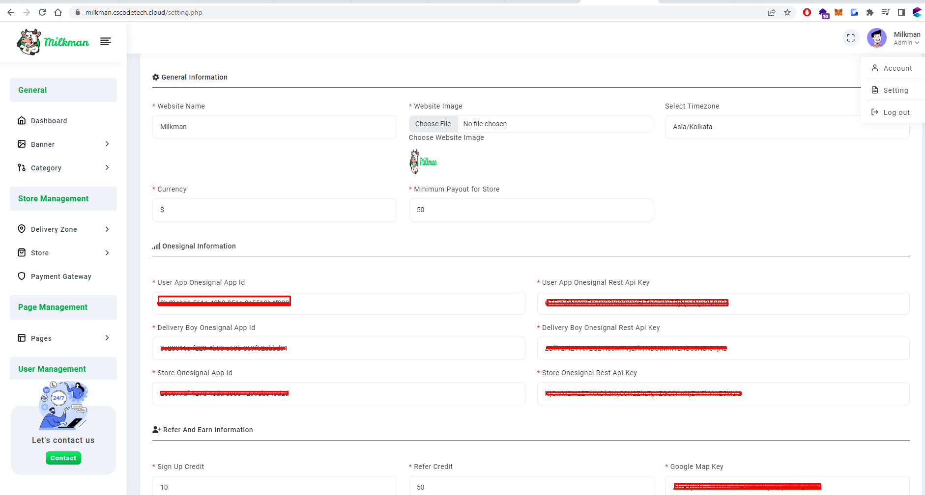 Step 8: Onesignal App ID & Rest Api Key paste it to admin setting tab