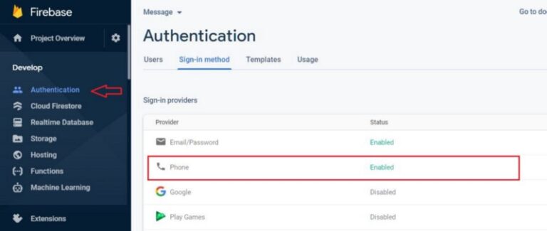 Next, go to the Authentication menu in Sidebar and enable the Phone Authentication option as shown in the above image.
